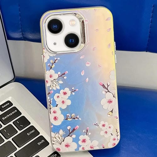 Funda para iPhone 13 TPU con Textura de Flor Láser y Galvanoplastia (Flor de Ciruelo Ah18)