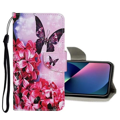 Funda de Cuero para iPhone 13 Mini con Tapa Patrón de Dibujo Coloreado (Mariposa de Flor Roja)