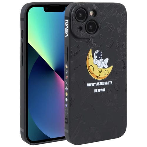 Funda de teléfono iPhone 13 Patrón de Astronauta Borde Recto Silicona (Negro)