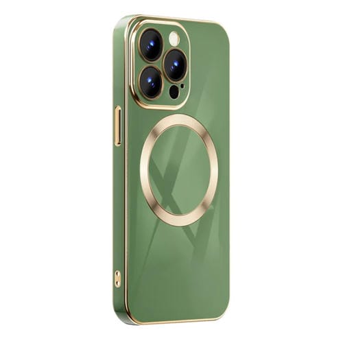 Caja de Teléfono Magnética Magsafe Para iPhone 13 Pro 6D Chapada en Oro (Verde)