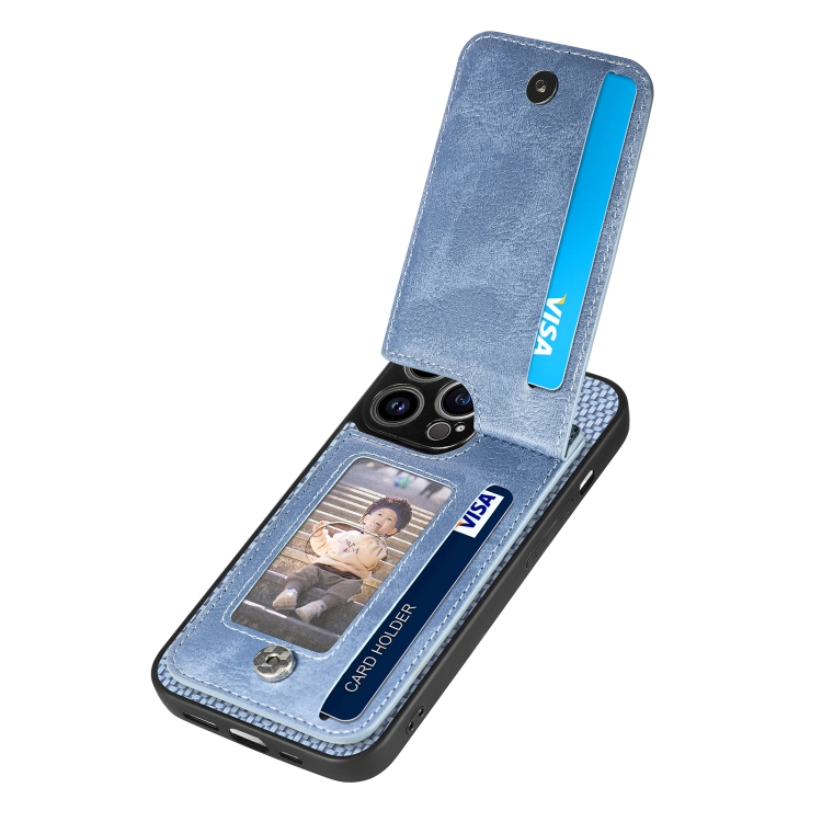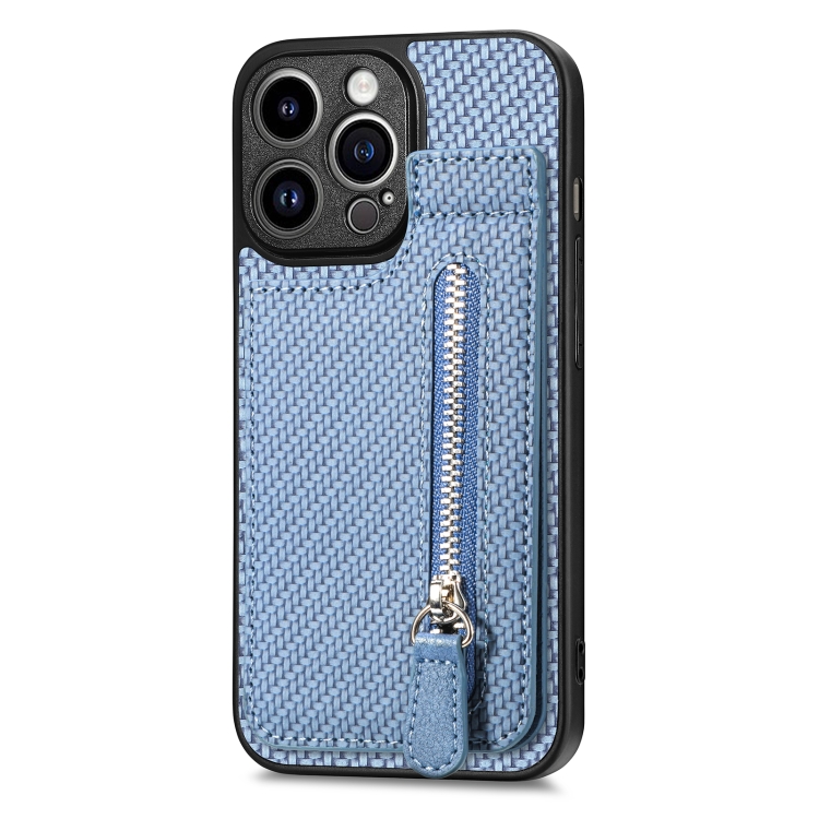 Funda para Teléfono iPhone 13 Pro Carbon Fiber Vertical Flip con Cremallera (Azul)