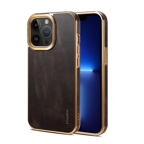 Funda para iPhone 13 Pro Denior Oil Wax Cowhide Plating Phone Case (Negro)
