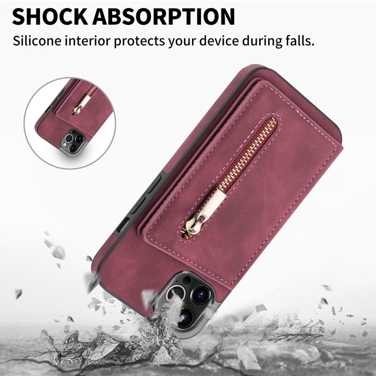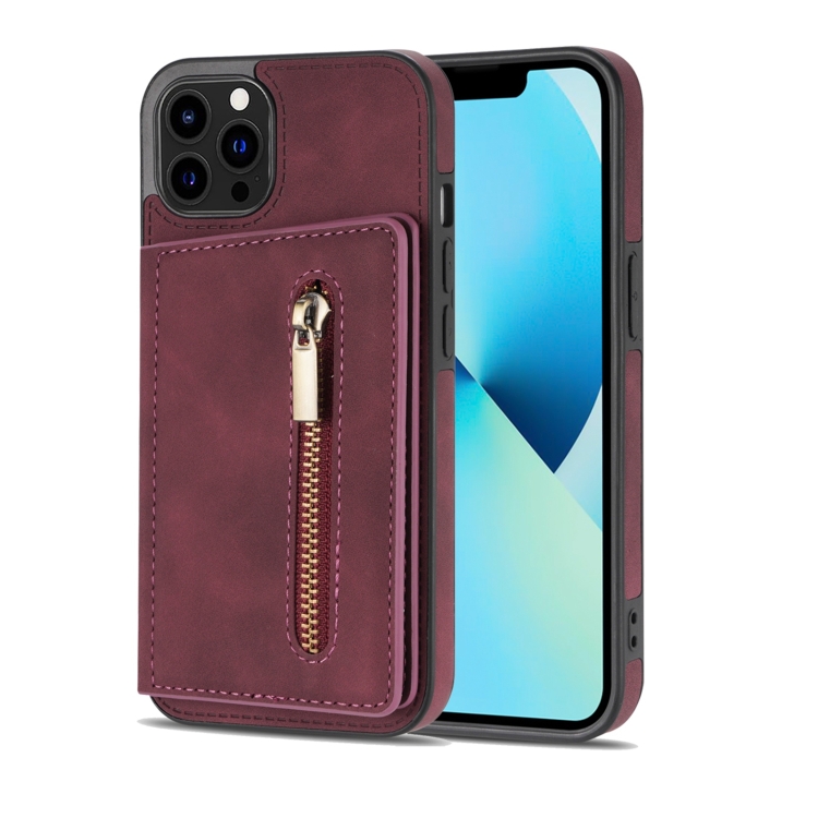 Funda para iPhone 13 Pro con Cremallera y Tarjetero (Rojo Vino)