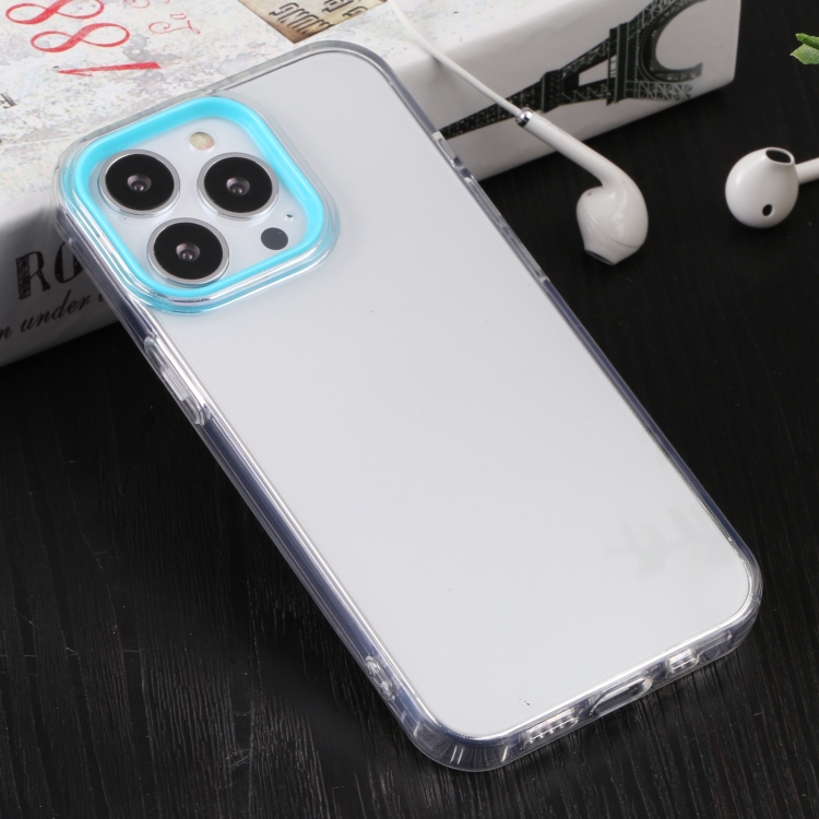 Funda para Teléfono iPhone 13 Pro Macaron Lente Marco Transparente TPU (Azul Cielo)