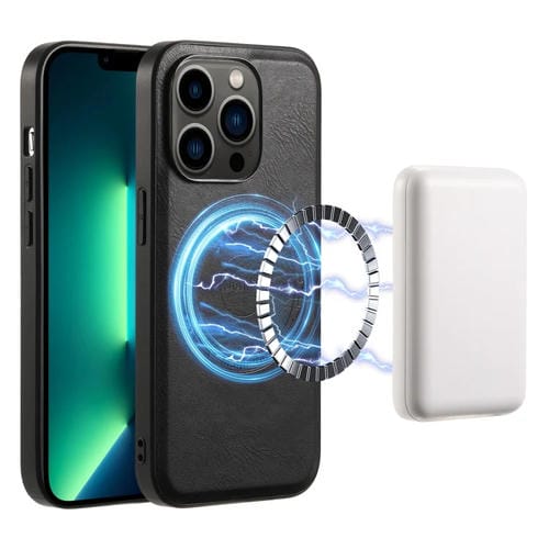 Funda para Teléfono Denior iPhone 13 Pro Max Magsafe Cuero Textura Piel de Vaca (Negro)