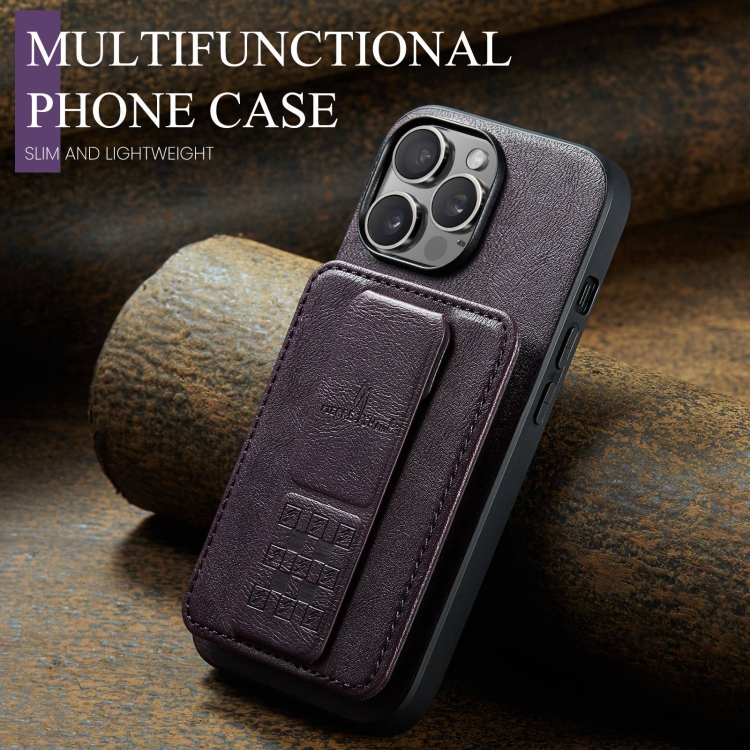 Funda para teléfono Fierre Shann iPhone 13 Pro Max Oil Wax con tarjetero de cuero de vaca (Púrpura)