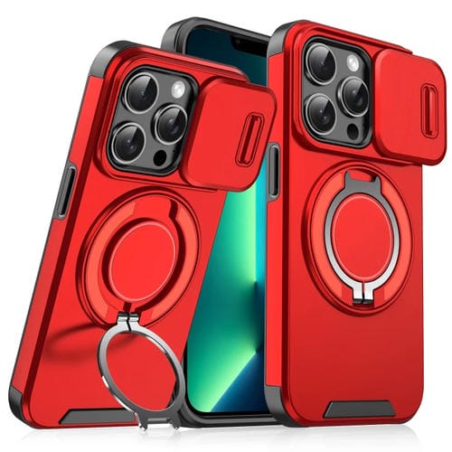 Funda para Teléfono para iPhone 13 Pro Max con Soporte para Anillo de Leva Deslizante (Rojo)