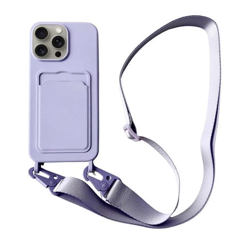 Funda para Teléfono iPhone 13 Pro Max Silicona Líquida Ranura para Tarjeta y Cordón (Púrpura Claro)