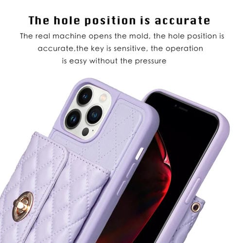 Funda Cartera para iPhone 13 Pro Max Rombico Horizontal Hebilla de Metal Cuero (Púrpura)