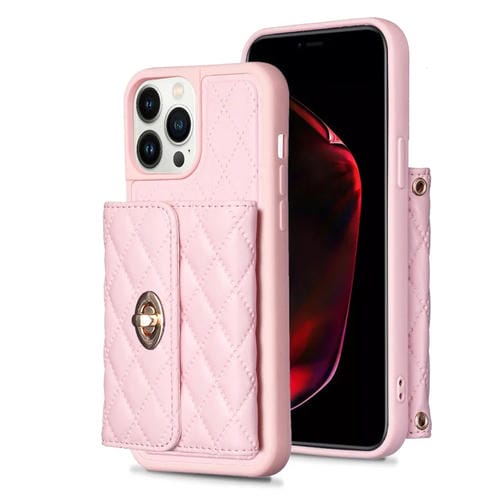 Funda de Cuero para iPhone 13 Pro Max Horizontal Metal Hebilla Cartera (Rosa)