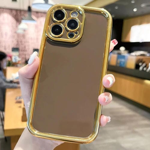 Funda de Teléfono iPhone 13 Pro Max Plating Emery PC Silicona Híbrida (Marrón)
