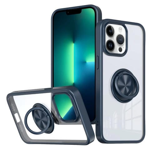 Funda para Teléfono iPhone 13 Pro Max Ring Holder PC Hybrid TPU (Azul)