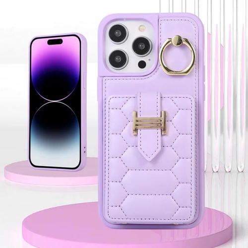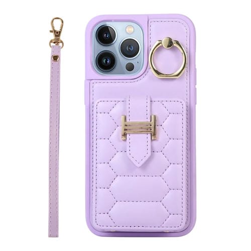Funda para iPhone 13 Pro Max Vertical Card Bag Ring Holder con Doble Cordón (Púrpura)