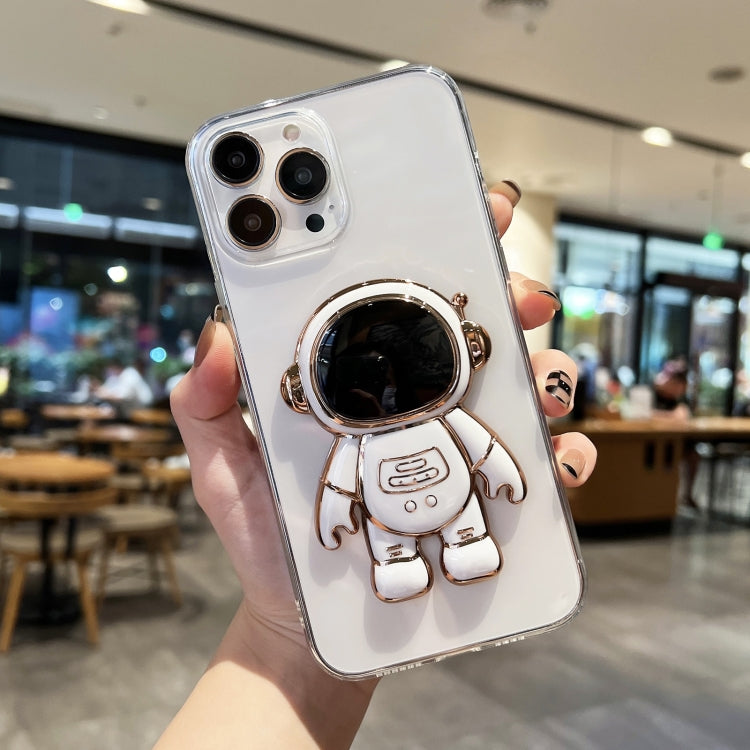 Funda de teléfono TPU Plating Astronaut Holder para iPhone 13 Pro (Blanco Transparente)