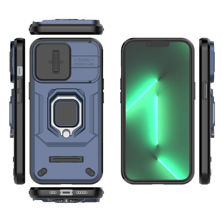 Estuche para Teléfono iPhone 13 Pro Sliding Camshield TPU + PC a Prueba de Golpes con Soporte (Azul)