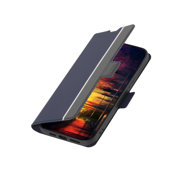 Funda para iPhone 13 Pro Twill Texture Botón Lateral Cuero (Azul)