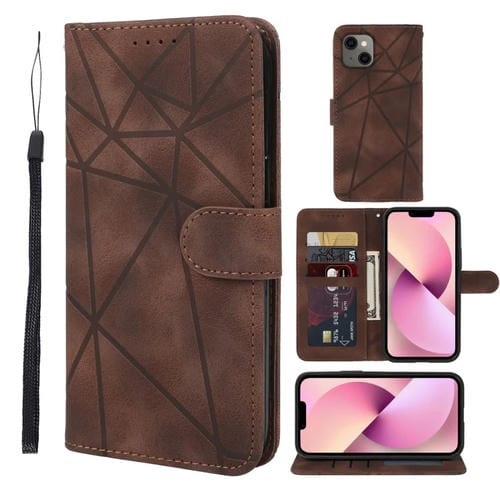 Funda de Cuero Skin Feel para iPhone 13 con Líneas Geométricas (Marrón)