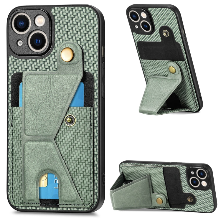 Funda para Teléfono iPhone 14 Fibra de Carbono Flip Card con Soporte en Forma de K (Verde)