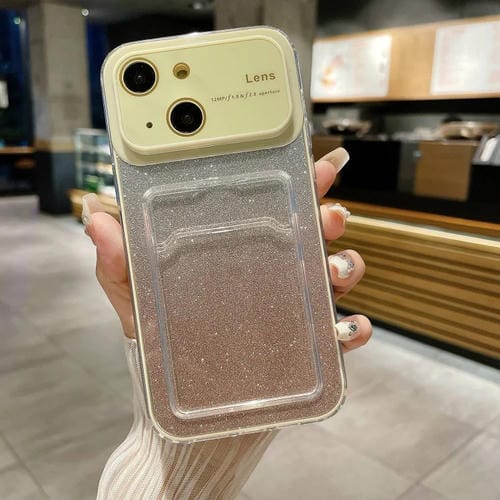 Estuche para Teléfono iPhone 14 con Brillo Degradado Ventana Grande y Ranura para Tarjeta (Amarillo)