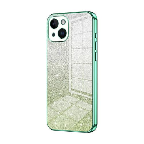 Estuche para Teléfono iPhone 14 Galvanizado con Polvo de Brillo Degradado (Verde)