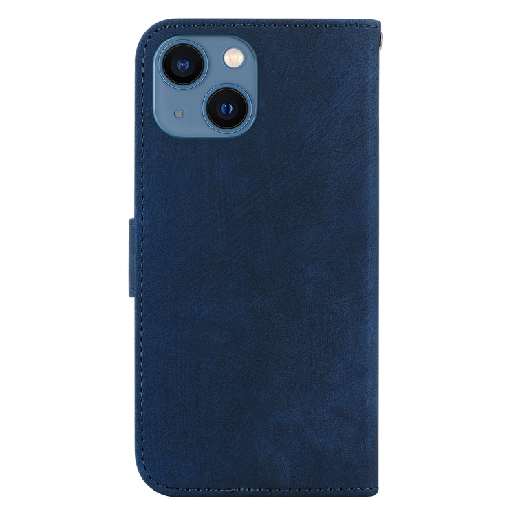 Funda de Cuero para iPhone 14 Little Tiger con Relieve (Azul Oscuro)