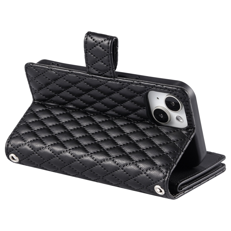 Funda para Teléfono iPhone 14 Cuero con Billetera Cremallera Celosía Purpurina (Negro)