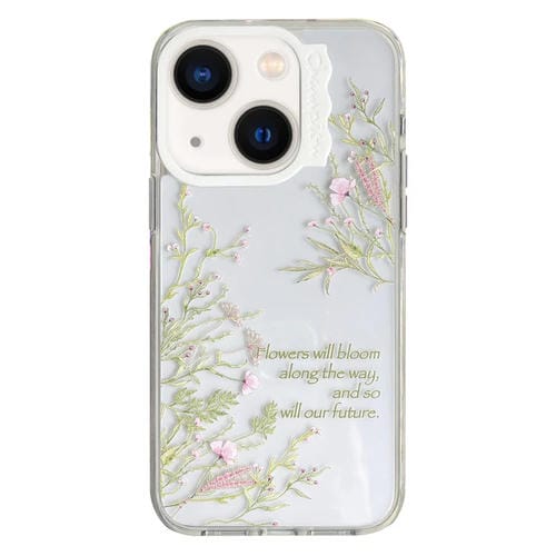 Funda para Teléfono iPhone 14 Patrón Creativo Círculo de Ondas (Flor Blanca)