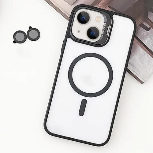 Funda para Teléfono iPhone 14 TPU Híbrido Acrílico Magsafe con Soporte y Película para Lentes (Negro)