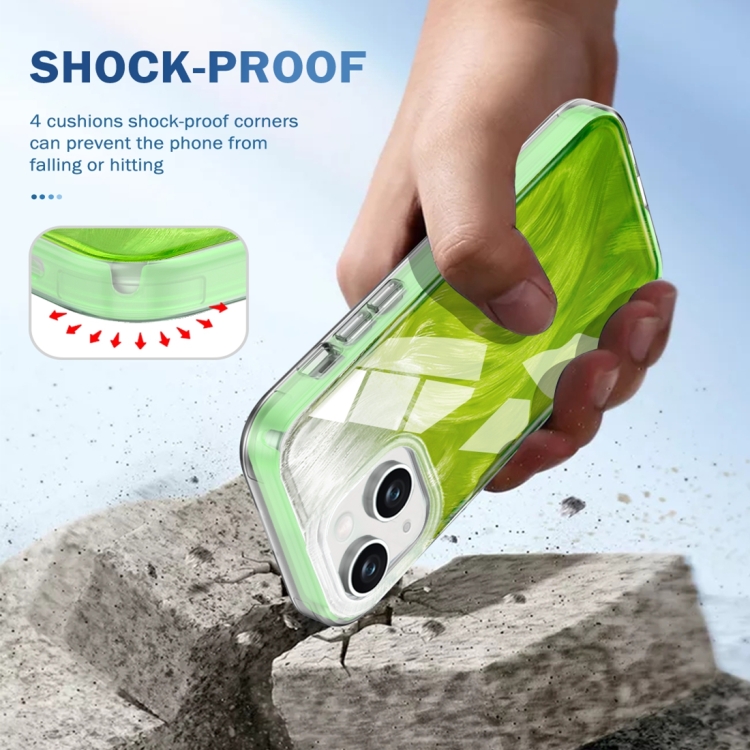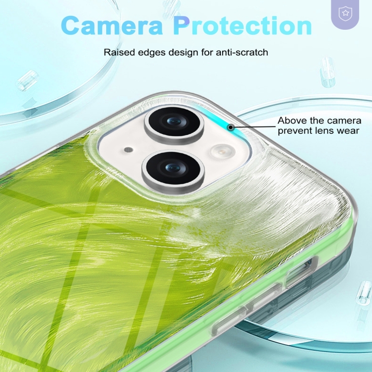 Funda para teléfono iPhone 14 Plus 2 en 1 Imd Gradient Feather PC y TPU (Verde)