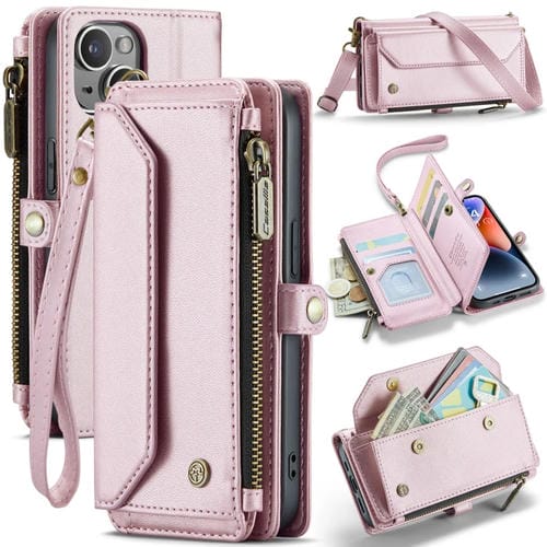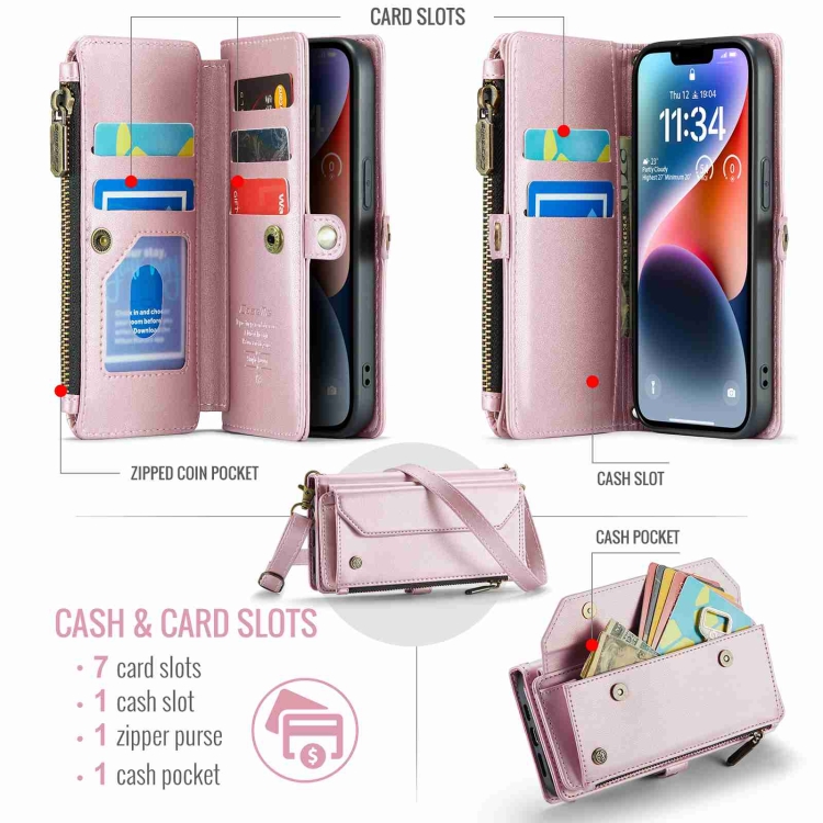 Funda para iPhone 14 Plus Caseme C36 con Ranuras para Tarjetas Cartera Cremallera Cuero Antirrobo Rfid (Rosa)