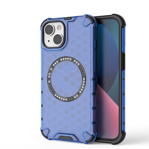 Funda para Teléfono iPhone 14 Plus con Anillo Magnético Panal a Prueba de Golpes (Azul)