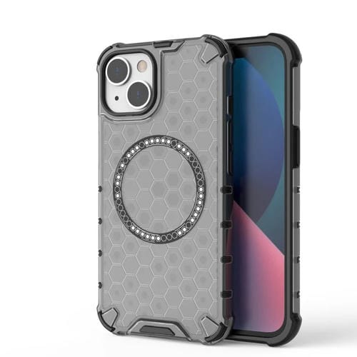 Funda para Teléfono iPhone 14 Plus con Anillo Magnético en Forma de Panal a Prueba de Golpes (Negro)