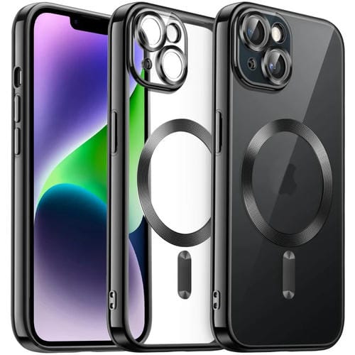 Funda para Teléfono iPhone 14 Plus TPU Galvanizada Transparente Magnética (Negro)