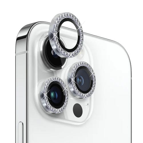 Película Lente cámara iPhone 14 Pro Northjo anillo diamantes metal vidrio templado (Plata)