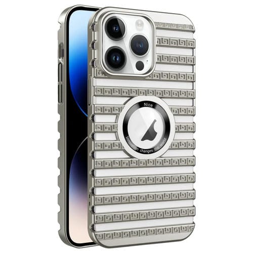 Caja de teléfono hueca galvanizada para iPhone 14 Pro Max con escalera de enfriamiento (Plateada)