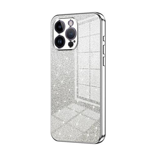 Estuche para Teléfono iPhone 14 Pro Max Galvanizado con Purpurina en Polvo Degradado (Plateado)