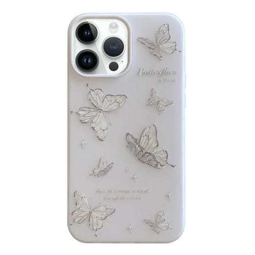 Funda para Teléfono iPhone 14 Pro Max Jelly 2 En 1 TPU Hybrid (Mariposas Plateadas)