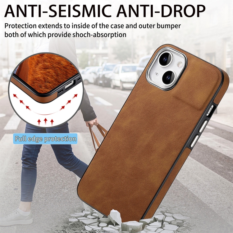 Funda para teléfono iPhone 14 Skin-Feel Galvanoplastia TPU a prueba de golpes (Marrón)