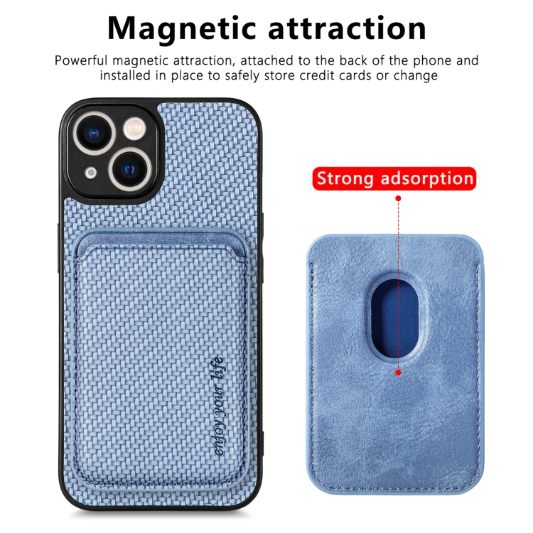Funda para iPhone 14 Cuero Fibra de Carbono Magsafe Magnética (Azul)