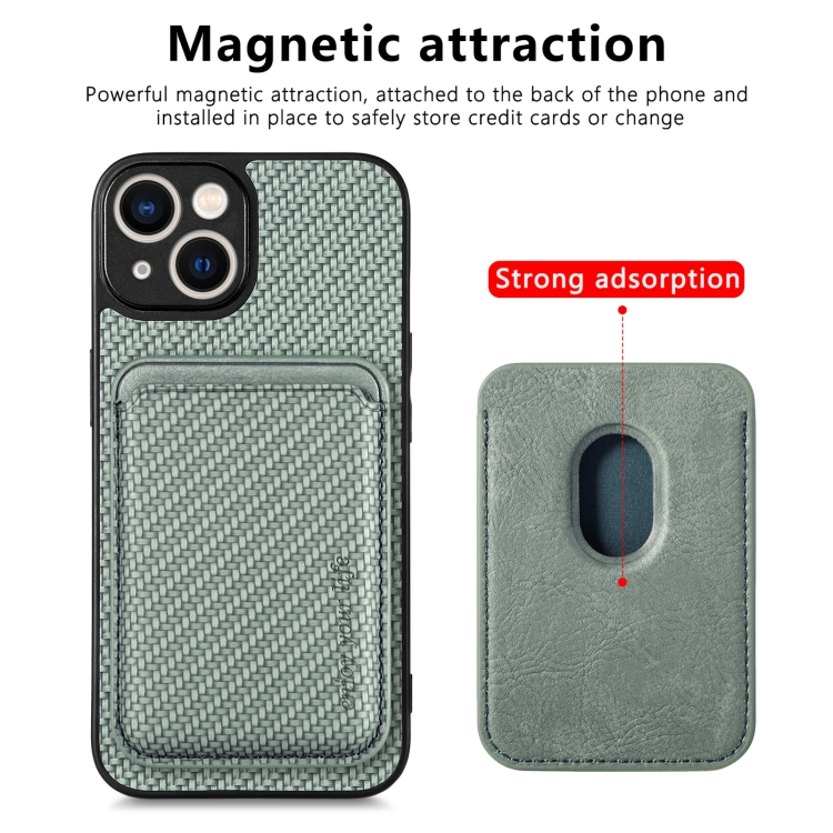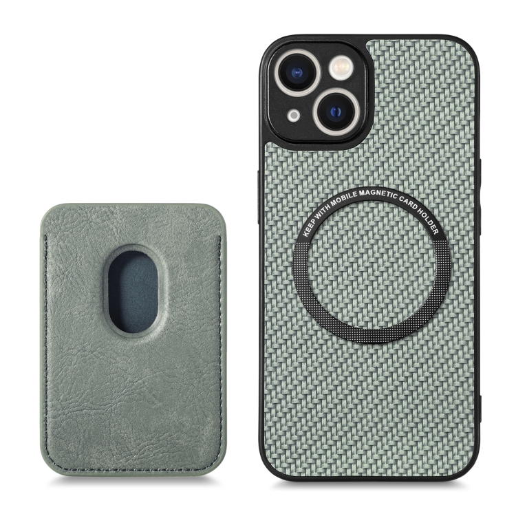 Funda para iPhone 14 Cuero Fibra de Carbono Magsafe Magnética (Verde)