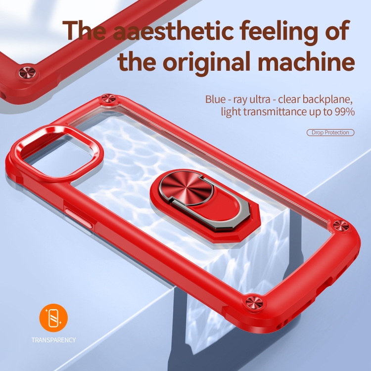 Estuche para Teléfono iPhone 14 TPU + PC con Protección de Lente y Soporte para Anillo (Rojo)