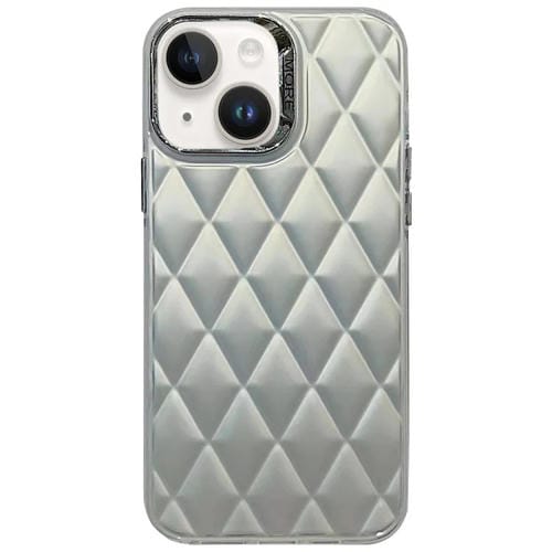 Funda para iPhone 15 3D Rhombus Galvanoplastia TPU Híbrida para PC (Plata)