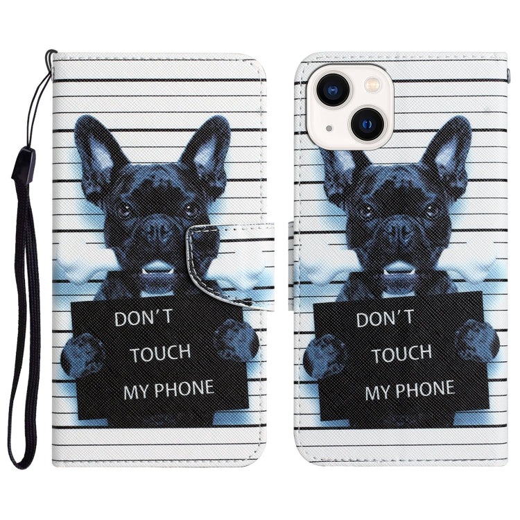 Estuche de teléfono iPhone 15 Cuero Dibujo Coloreado (Perro Negro)