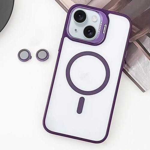 Estuche para Teléfono iPhone 15 TPU Híbrido Acrílico Magsafe con Soporte y Película para Lentes (Púrpura)