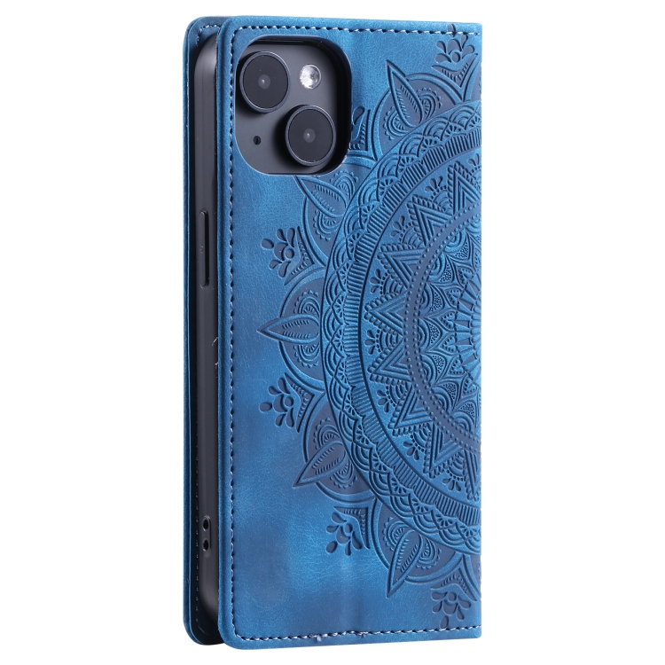Estuche para Teléfono iPhone 15 Cuero Magnético con Relieve de Tótem (Azul)