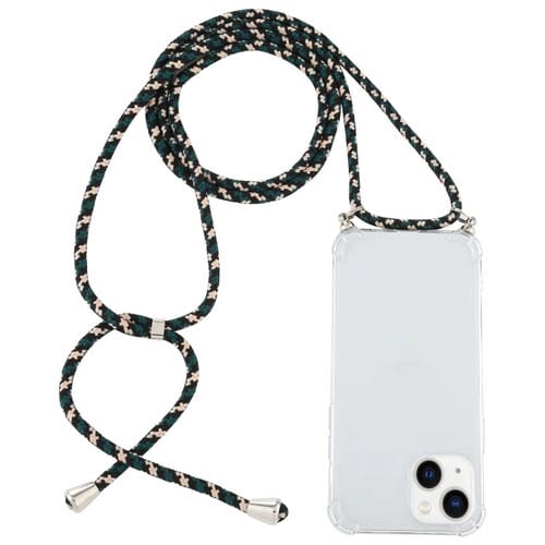 Funda para iPhone 15 TPU Transparente a Prueba de Golpes Cuatro Esquinas con Cordón (Verde Negro)