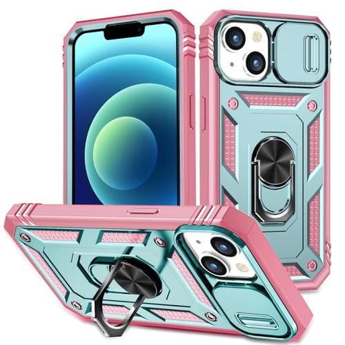 Funda Deslizante para iPhone 15 con Soporte Camshield (Verde + Rosa)