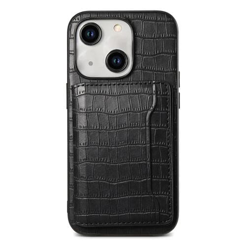 Funda para Teléfono iPhone 15 Diseño Bolsa de Tarjeta Textura Cocodrilo (Negro)