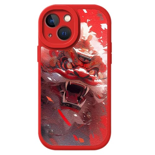 Funda para Teléfono iPhone 15 Cuero de Cordero Diseño Año Nuevo Cobertura Total (Awaken Lion)