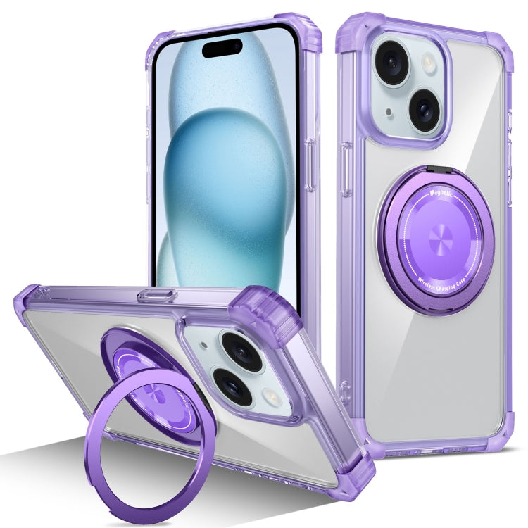 Estuche magnético para iPhone 15 Gold Shield Cd Pattern con soporte giratorio (Púrpura Transparente)